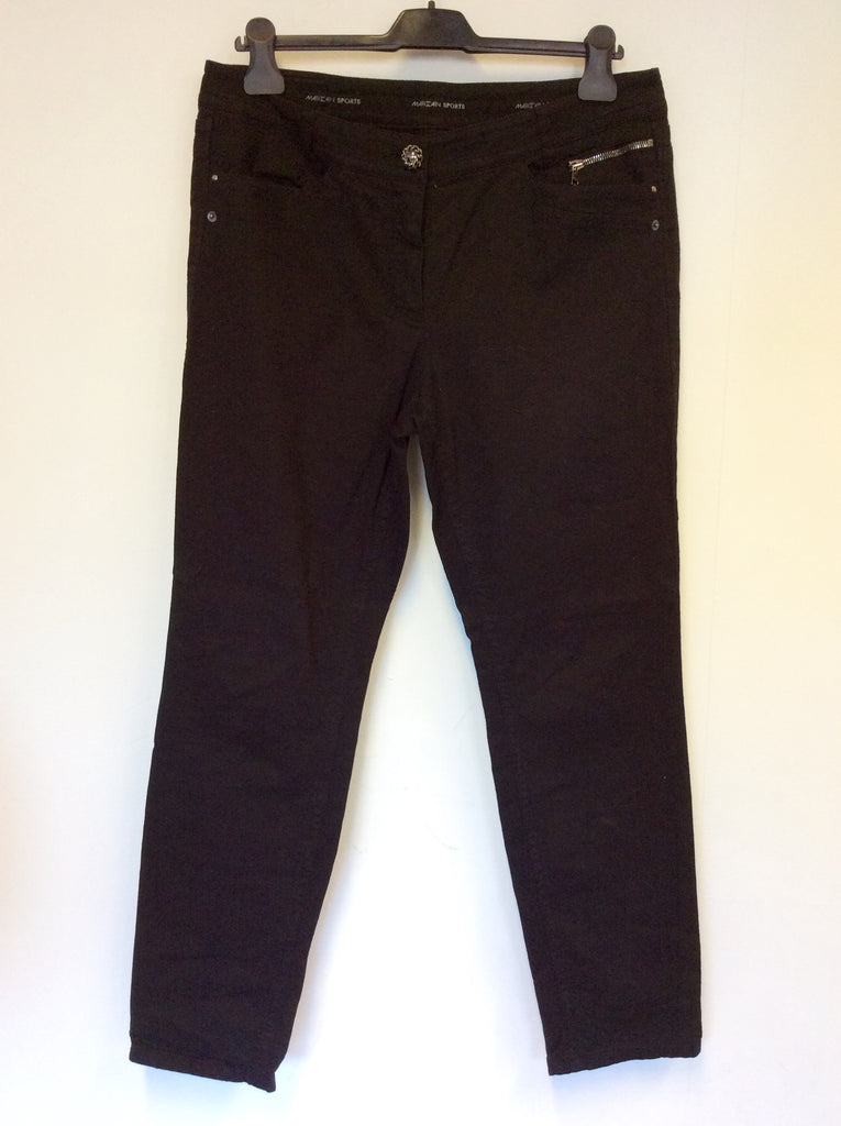 MARCCAIN BLACK EMBROIDERED JEANS SIZE N6 UK 16