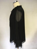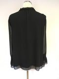 MARCCAIN BLACK TIE FRONT LONG SHEER SLEEVE TOP SIZE N4 UK 14