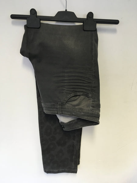 MARCCAIN DARK GREY LEOPARD PRINT DESIGN STRAIGHT SLIM LEG JEANS SIZE N5 UK 16