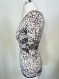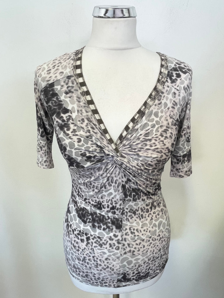 MARCCAIN GREY & PINK ANIMAL PRINT SHORT SLEEVE TOP SIZE 2 UK 10