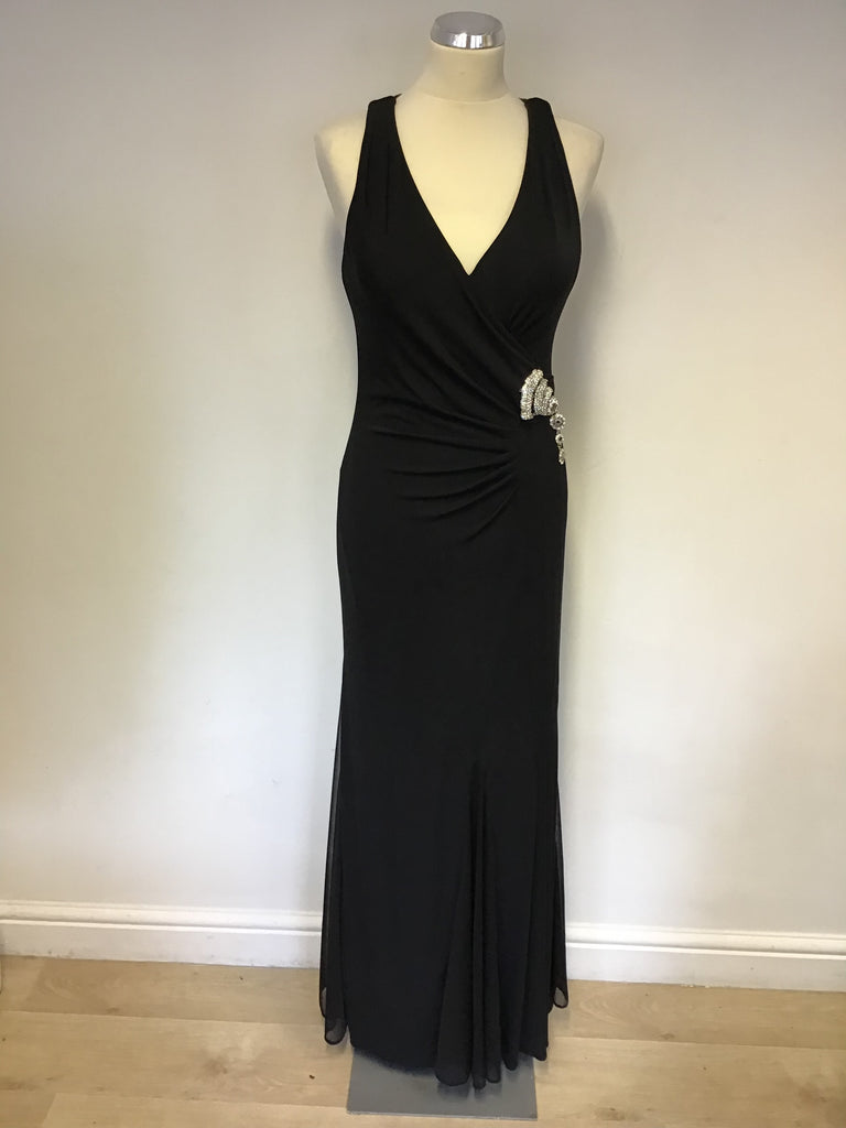 Marcelane Black Strappy Full Length Evening Dress With Diamanté Trim Size 12