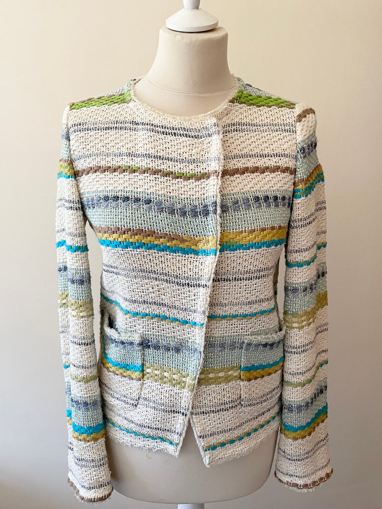 MARELLA SPORT CREAM & MULTI COLOURED STRIPED CARDIGAN/ JACKET SIZE 8