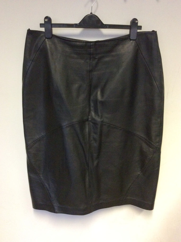 MARKS & SPENCER AUTOGRAPH BLACK SOFT LEATHER STRAIGHT SKIRT SIZE 18