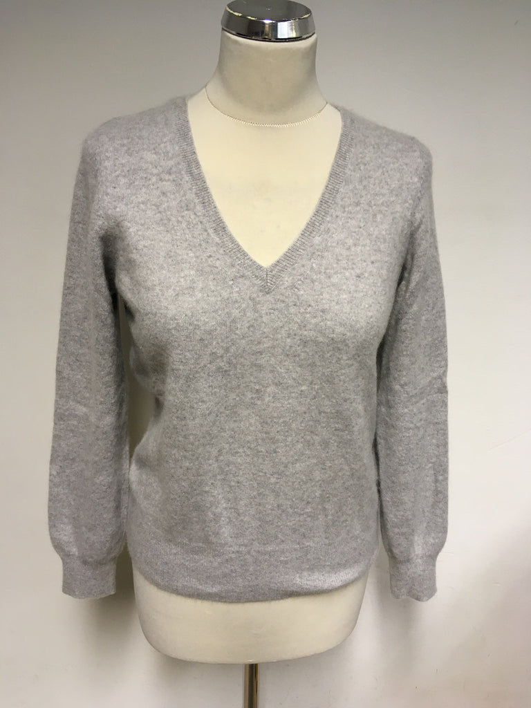 MARKS & SPENCER AUTOGRAPH LIGHT GREY V NECK CASHMERE JUMPER SIZE 14