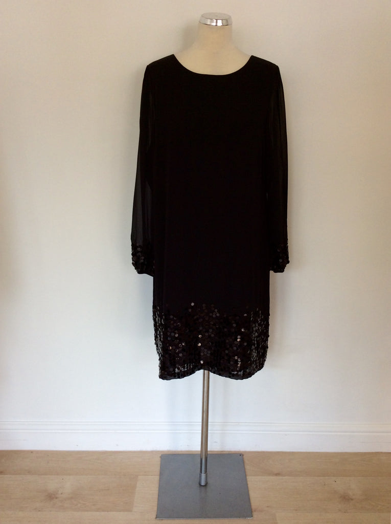 MARKS & SPENCER AUTOGRAPH OCCASIONS BLACK SEQUIN TRIM DRESS SIZE 16