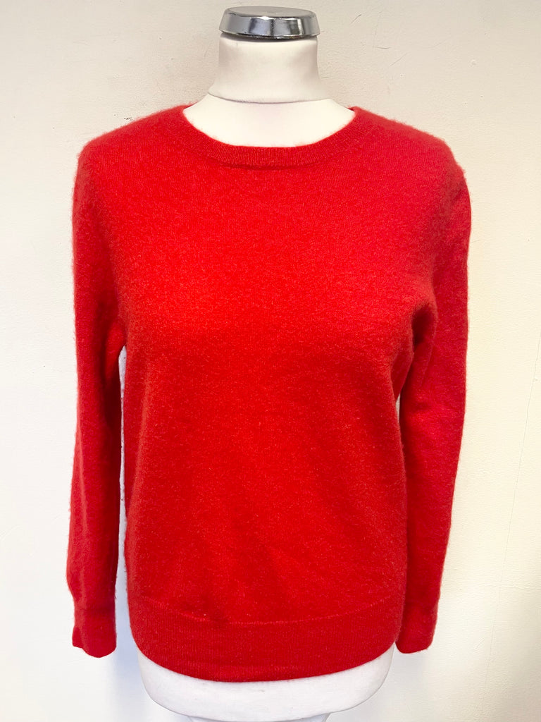 MARKS & SPENCER AUTOGRAPH RED CASHMERE ROUND NECK LONG SLEEVED JUMPER SIZE 14