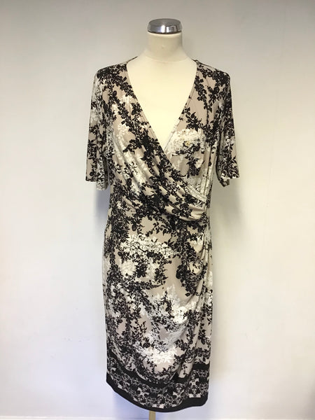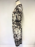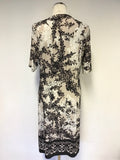 MARKS & SPENCER BEIGE,BLACK & WHITE PRINT SHORT SLEEVE STRETCH DRESS SIZE 16