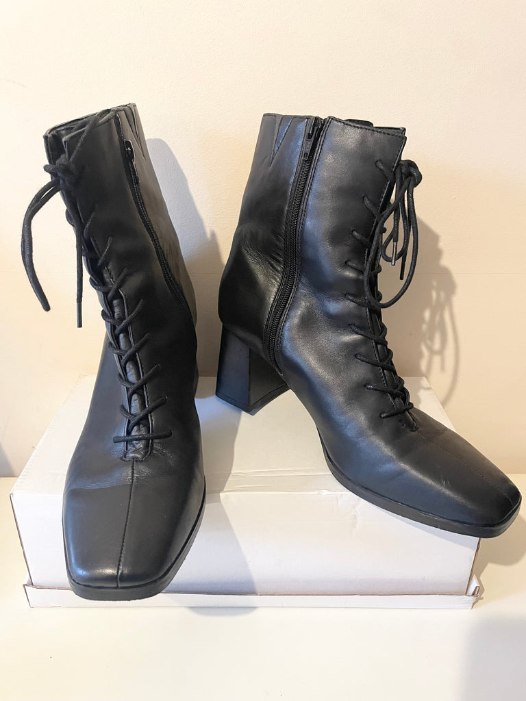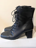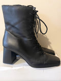 MARKS & SPENCER BLACK LEATHER LACE UP HEELED ANKLE BOOTS SIZE 7.5/ 41
