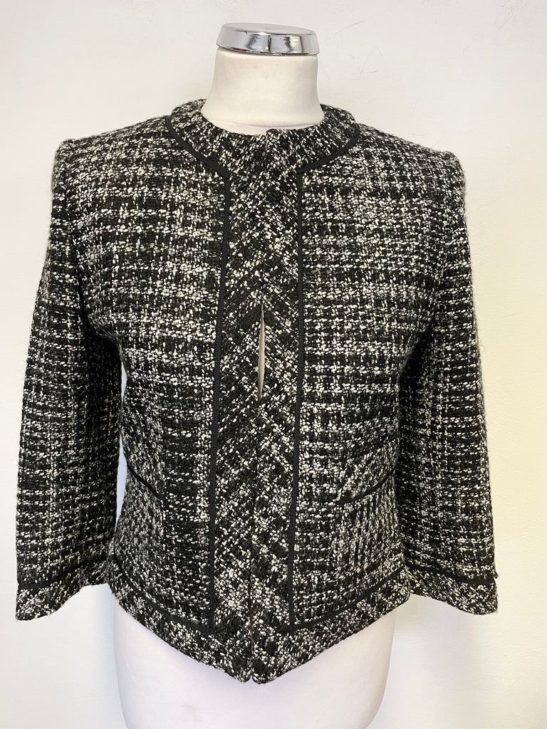 MARKS & SPENCER BLACK MIX TWEED COLLARLESS JACKET SIZE 10