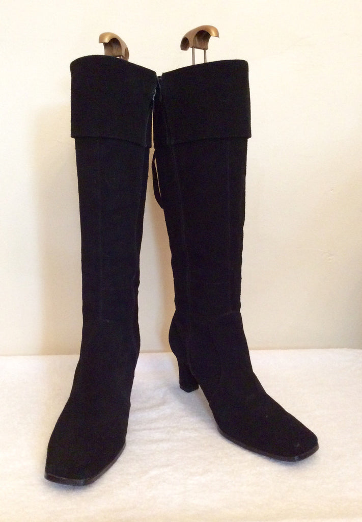 Marks & Spencer Black Suede Bow Trim Heel Boots Size 5/38