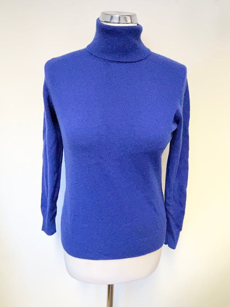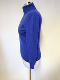 MARKS & SPENCER COBALT BLUE 100% CASHMERE POLO NECK JUMPER SIZE 12