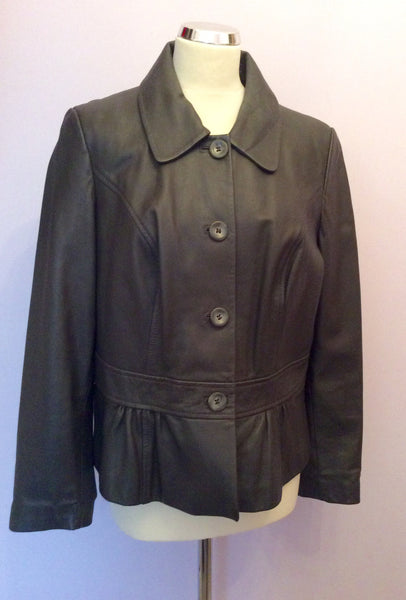 Marks & Spencer Dark Olive Green Leather Jacket Size 18