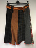 MARSHA SWANZY GREY,BLACK & ORANGE WOOL BLEND FLIPPY PANELLED SKIRT SIZE 10