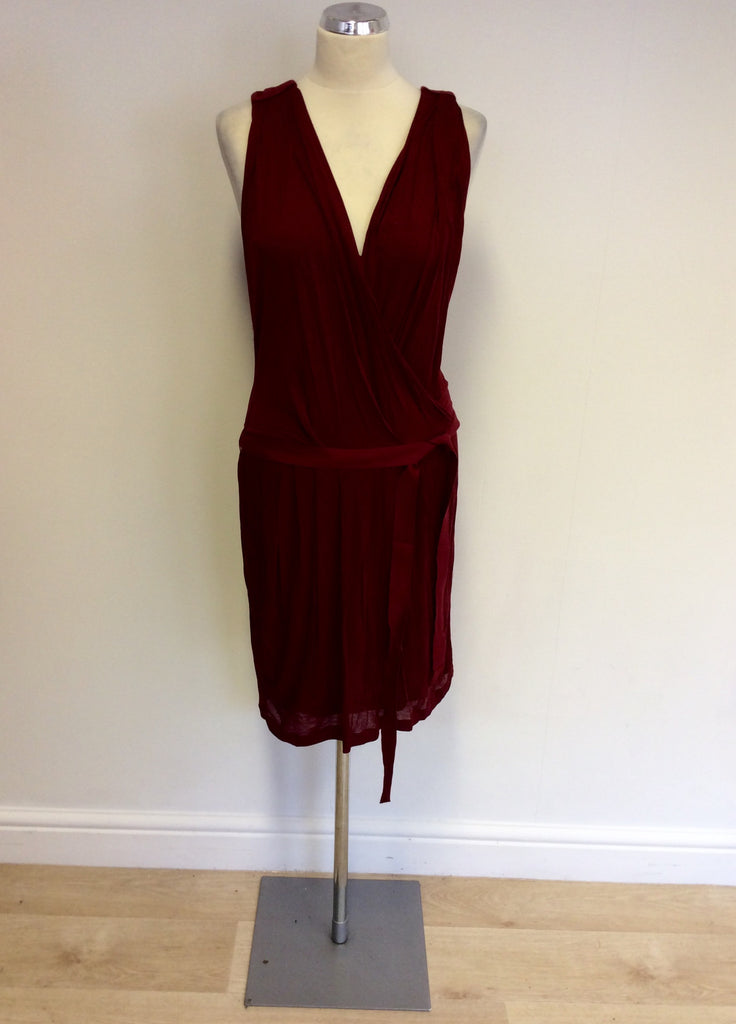 MASSIMO DUTTI DARK RED STRETCH JERSEY DRESS SIZE L