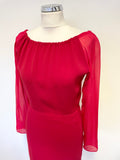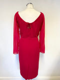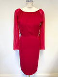 MAX MARA RED WIDE NECKLINE LONG SLEEVED PENCIL DRESS SIZE 8/10