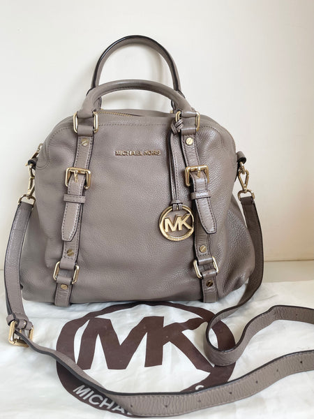 MICHAEL KORS TAUPE LEATHER TOTE BAG WITH DETACHABLE LONG STRAP