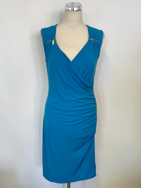 MICHAEL KORS TURQUOISE ZIP TRIM SLEEVELESS STRETCH PENCIL DRESS SIZE M