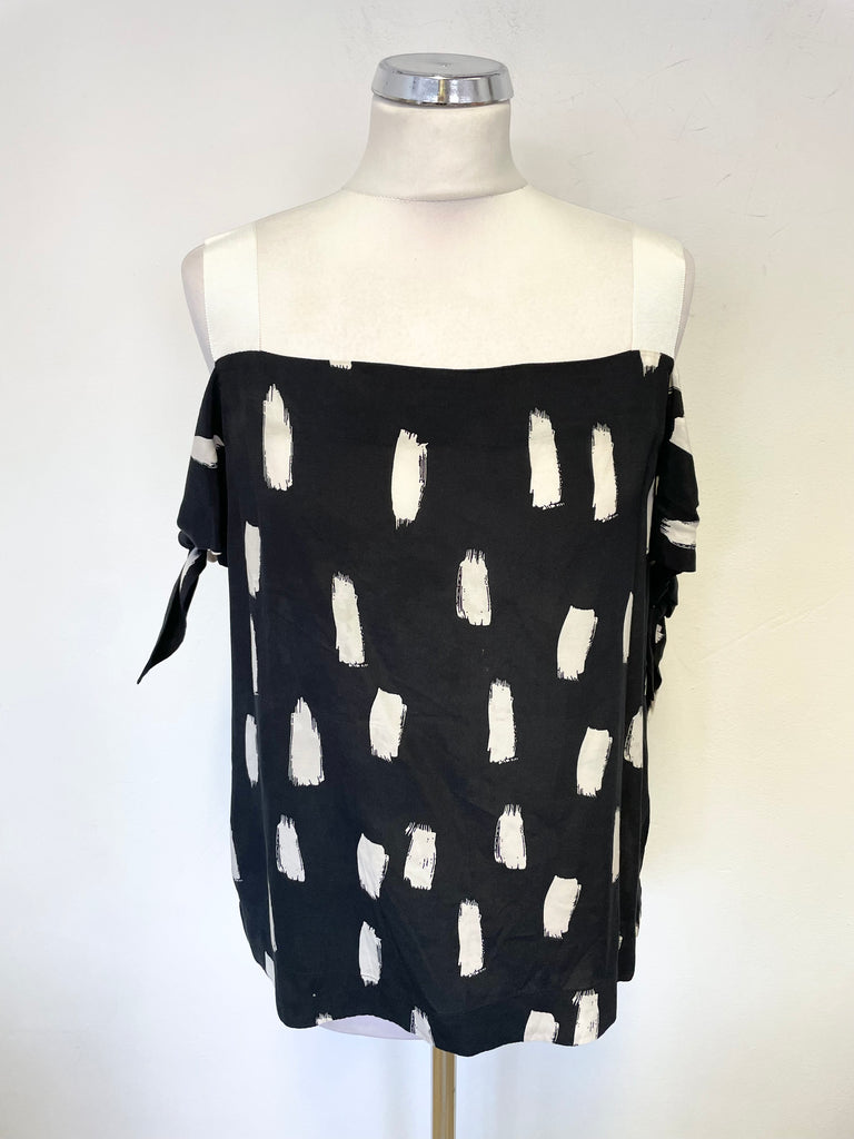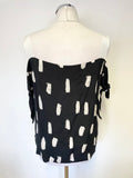 MINT VELVET BLACK & WHITE PRINT COLD SHOULDER TIE SLEEVE TOP SIZE 12
