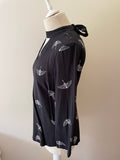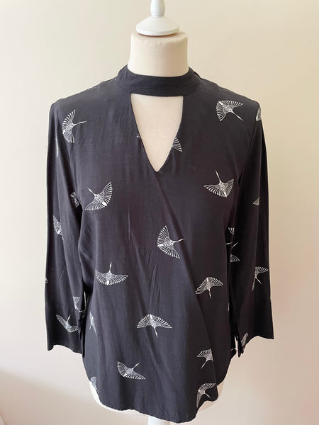 MINT VELVET BLACK & WHITE PRINT CUT OUT NECK 3/4 SLEEVE TOP SIZE 10