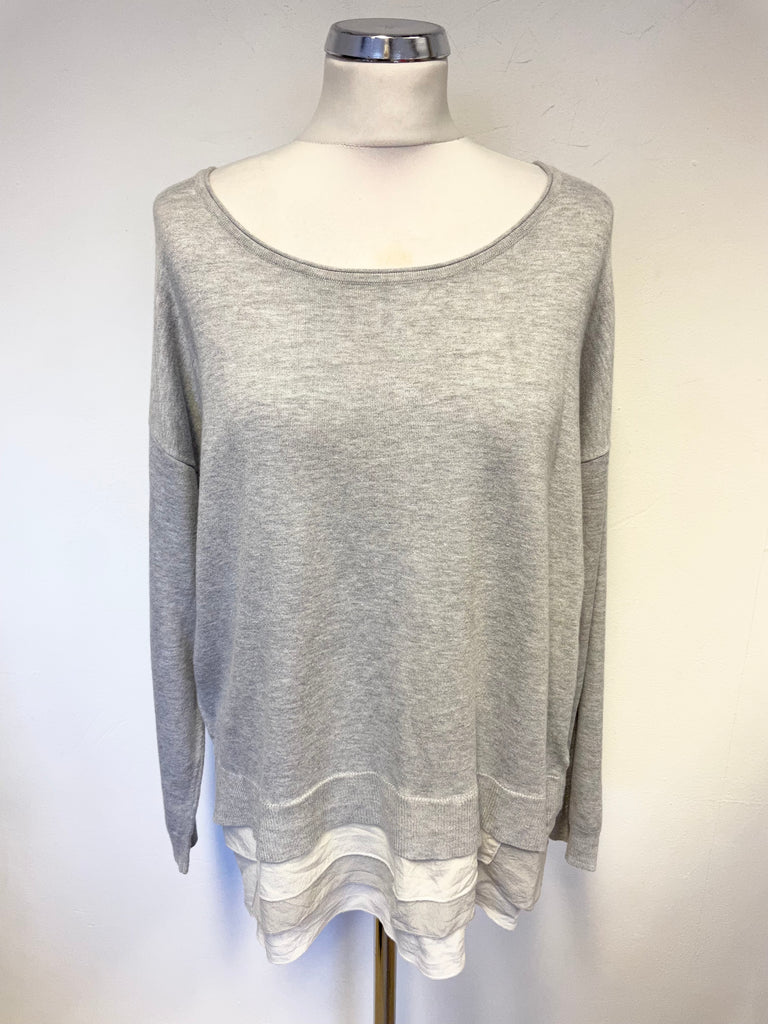 MINT VELVET GREY SILK TRIMMED LONG SLEEVE JUMPER SIZE 16