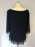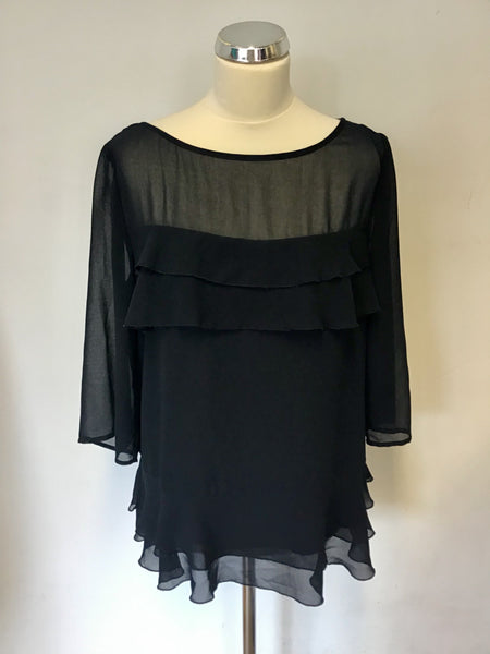 MINT VELVET NAVY BLUE TIERED FRILL TRIM TOP SIZE 14