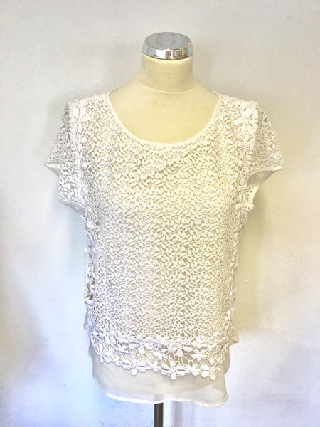 MINT VELVET WHITE CAP SLEEVE CROCHET TOP SIZE 16