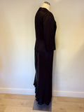 MINUET BLACK MATT SATIN EVENING JACKET & LONG SKIRT SUIT SIZE 10/12