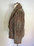 MINUET BROWN,CREAM & ORANGE WEAVE WOOL BLEND SKIRT SUIT SIZE 14
