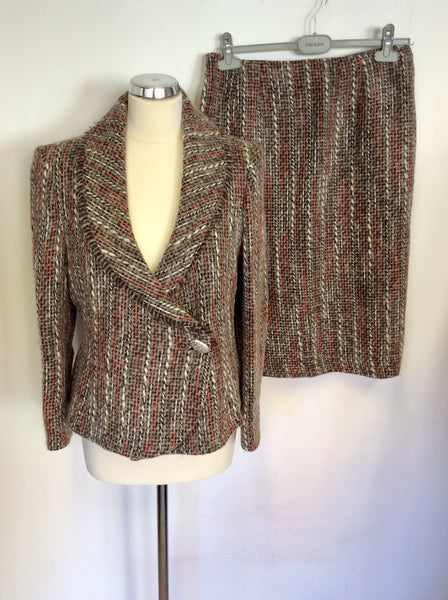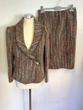 MINUET BROWN,CREAM & ORANGE WEAVE WOOL BLEND SKIRT SUIT