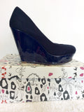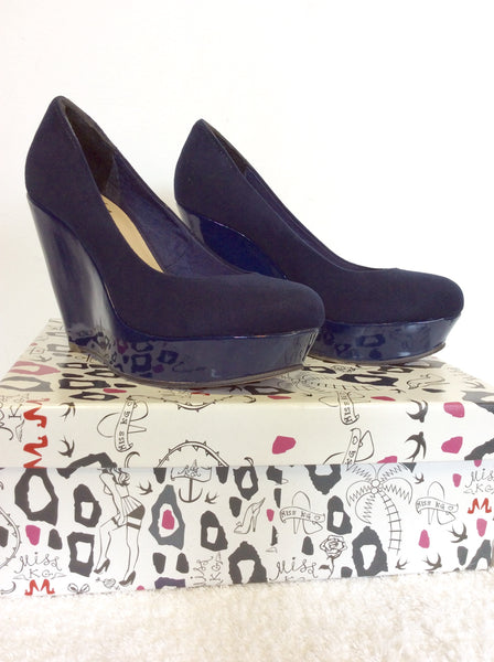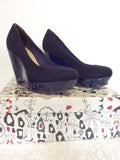 MISS KURT GEIGER NAVY BLUE SUEDETTE WEDGE HEELS