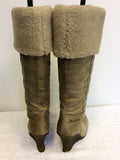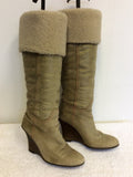 MISS SIXTY LIGHT GREEN PEARLISED WEDGE HEEL BOOTS SIZE 3.5/36