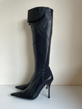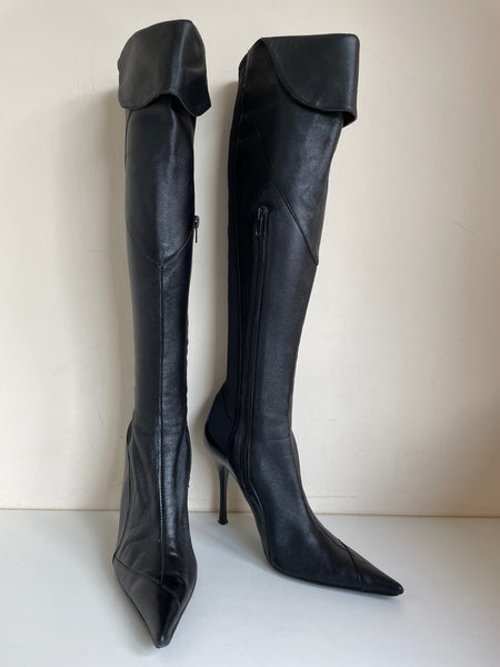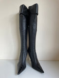 MODA IN PELLE BLACK KNEE LENGTH HIGH HEEL LEATHER BOOTS SIZE 4/37