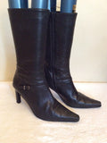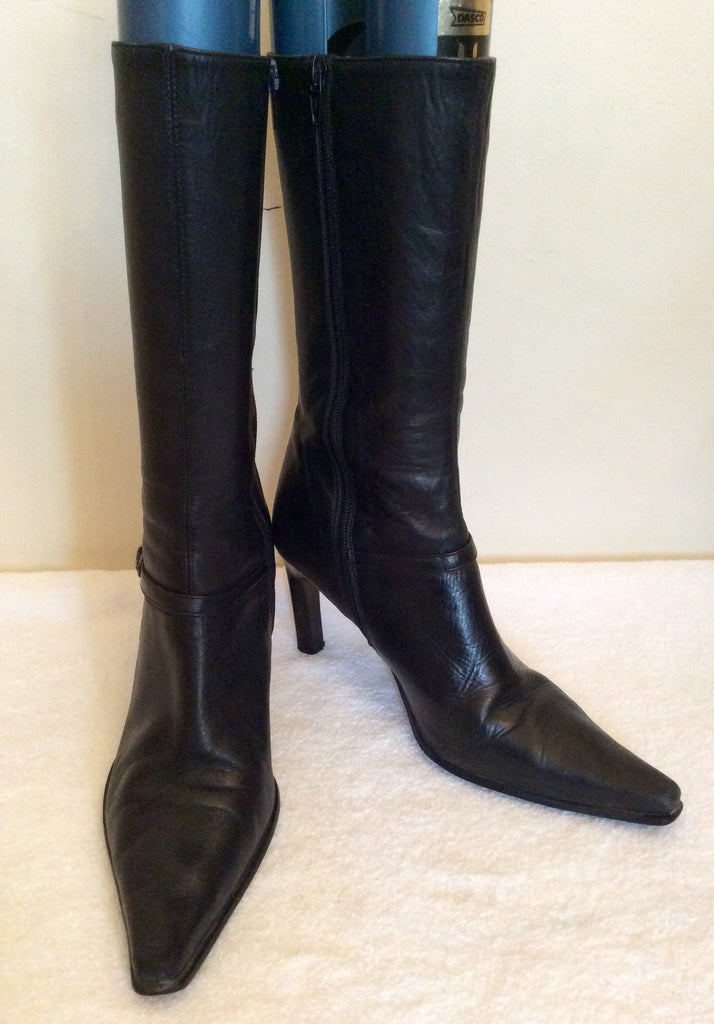 Moda In Pelle Black Leather Calf Length Boots Size 4/37