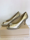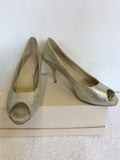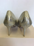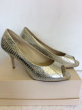MODA IN PELLE SILVER SNAKESKIN PEEPTOE LEATHER HEELS SIZE 7/40