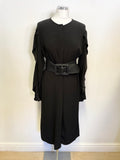 MODERN RARITY BLACK FRILLED LONG SLEEVED SHIFT DRESS WITH OPTIONAL BELT SIZE 10