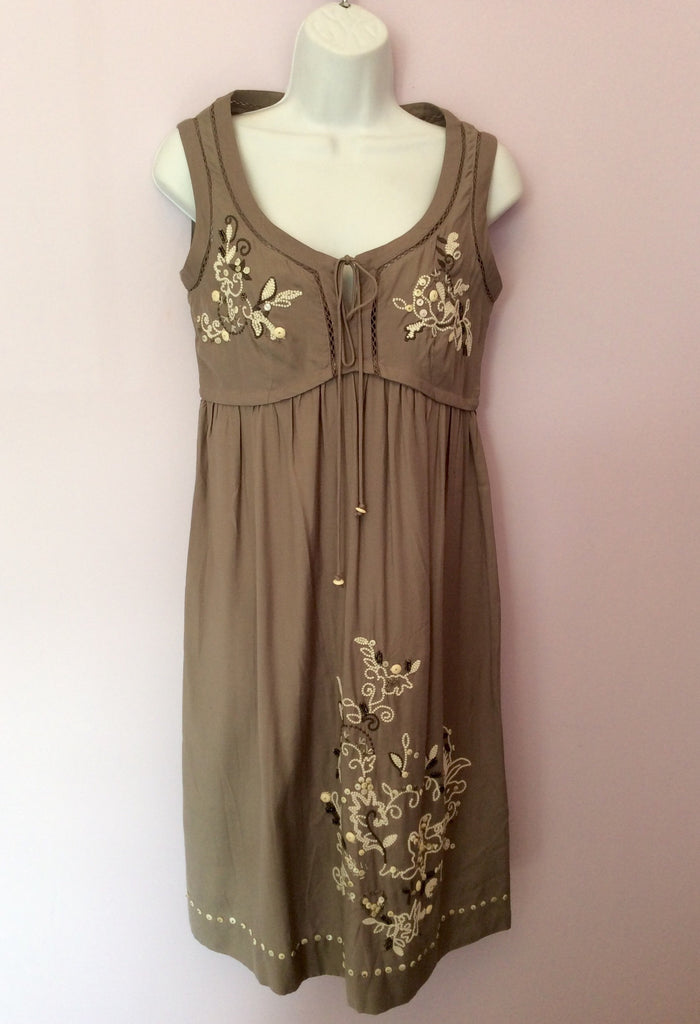 Monsoon Beige Beaded & Sequin Trim Dress Size 8