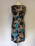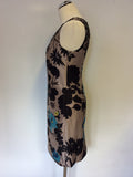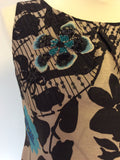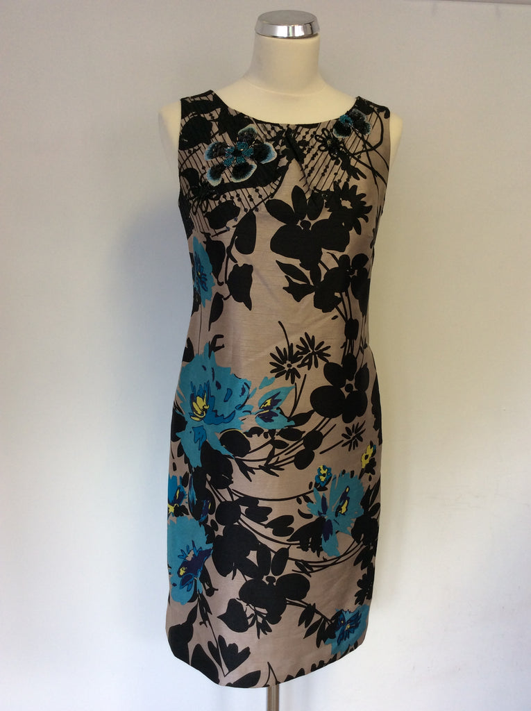 MONSOON BLACK,MINK & TURQOUISE FLORAL PRINT EMBELLISHED SHIFT DRESS SIZE 8