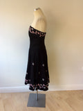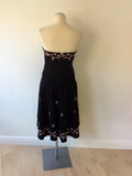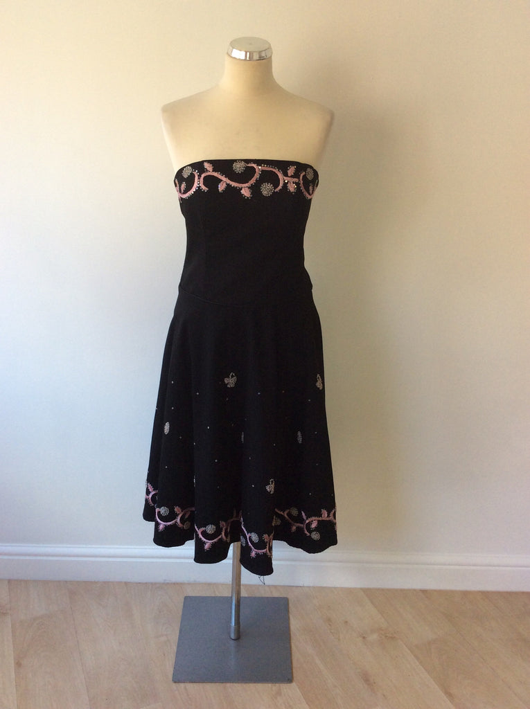 MONSOON BLACK & PINK EMBROIDERED & SEQUINED STRAPLESS DRESS SIZE 10