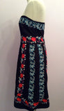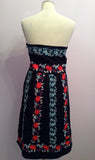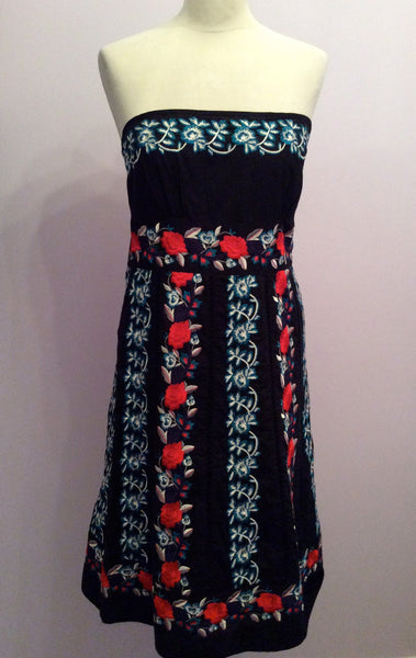 Monsoon Black With Red, White & Green Embroidered Strapless Dress Size 12