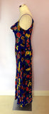 Monsoon Blue Floral Silk Blend Long Dress Size 14