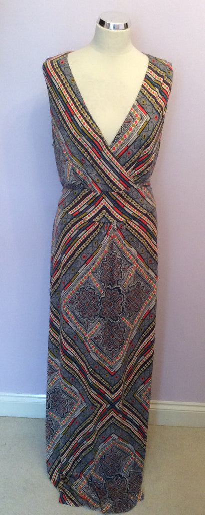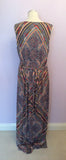 MONSOON BLUE,ORANGE,MUSTARD & WHITE PRINT MAXI DRESS SIZE 22