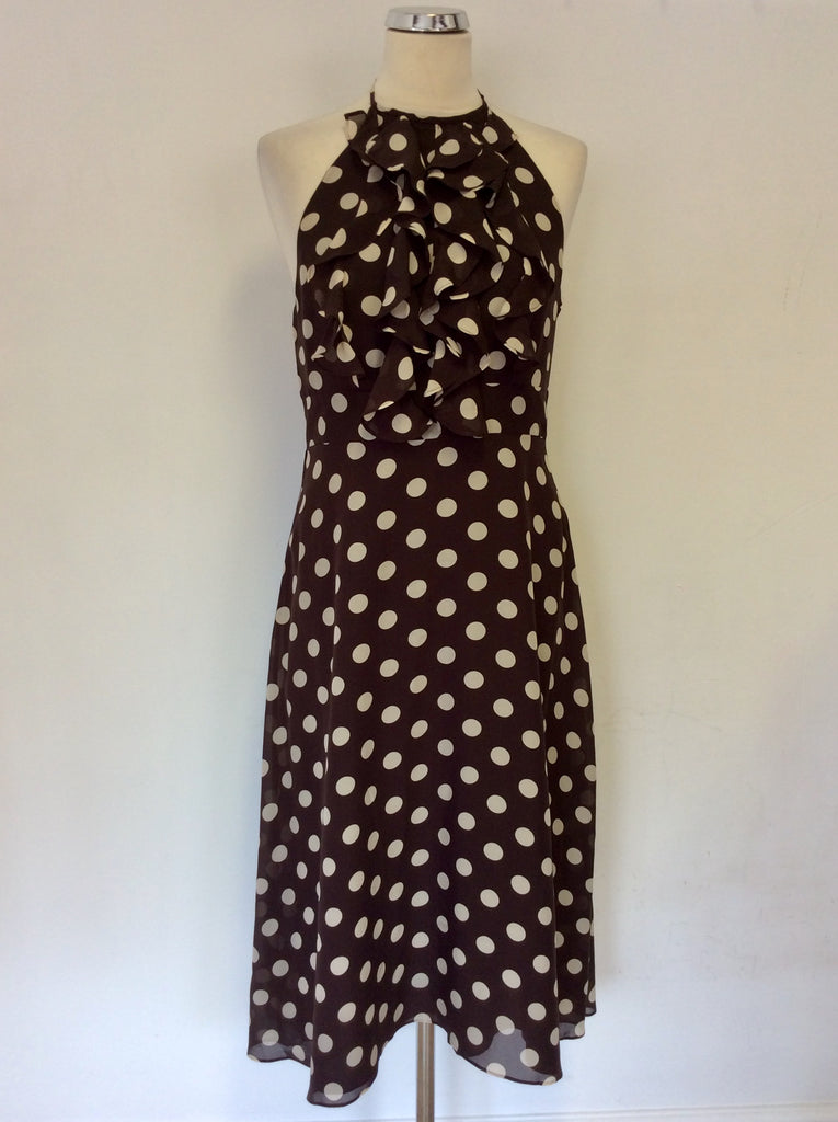 MONSOON BROWN & CREAM SPOT SILK HALTERNECK DRESS SIZE 12
