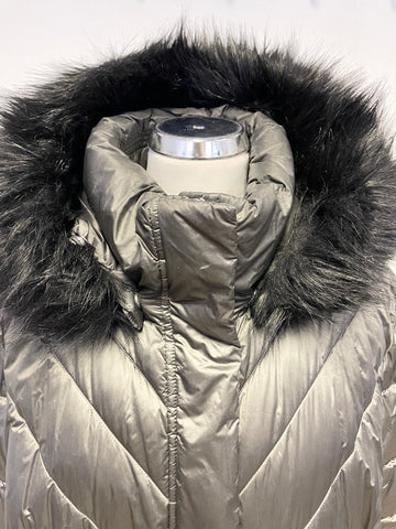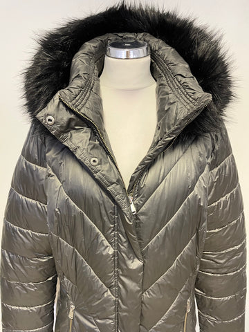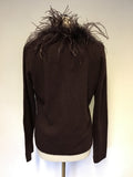 MONSOON DARK BROWN FAUX FUR & FEATHER TRIM CARDIGAN SIZE 14