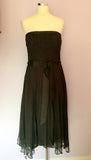 Monsoon Dark Green Strapless Silk Occasion Dress Size 12