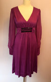 Monsoon Deep Pink Beaded Trim Silk Dress Size 10