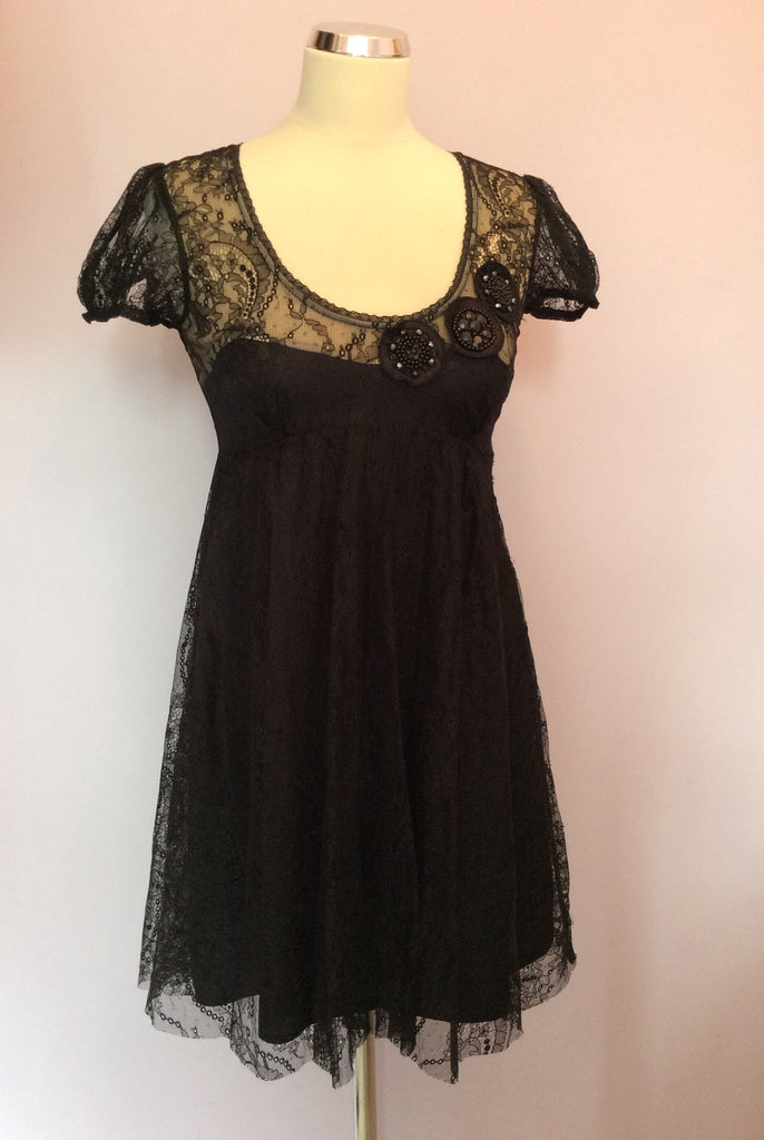 Monsoon Fusion Black Lace Beaded Trim Dress Size 8