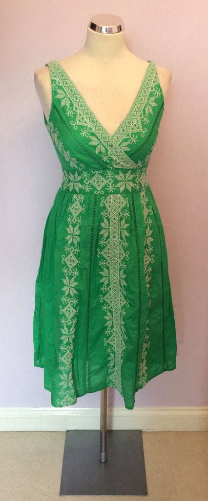 MONSOON GREEN & WHITE EMBROIDERED COTTON DRESS SIZE 8
