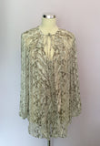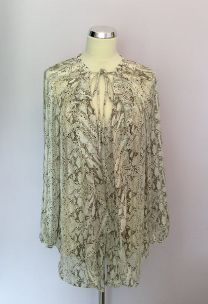 Monsoon Ivory & Brown Print Tie Neck Blouse Size 14