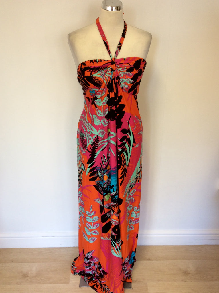 MONSOON MULTI COLOURED PRINT HALTER NECK STRETCH MAXI DRESS SIZE 18