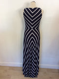MONSOON NAVY BLUE & WHITE STRIPE MAXI DRESS SIZE 10